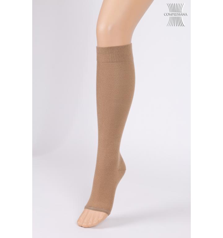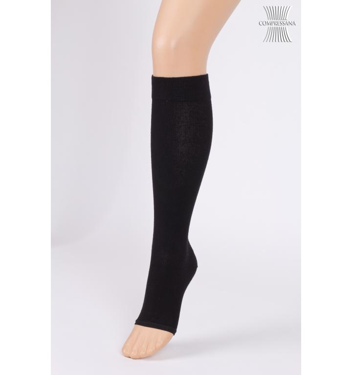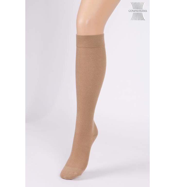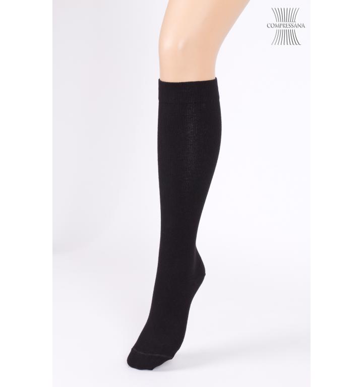 Potporne kompresijske čarape za koljena s udjelom pamuka od 65%. Klasa kompresije A, viša klasa potpore IV. Za prevenciju proširenih vena i oteklina, protiv teških, umornih i bolnih nogu. Pogodan za posao, dom i duga putovanja. Udoban prošireni rub i optimalan kroj, vrlo robustan i izdržljiv. Pogodno i za dame i za gospodu.